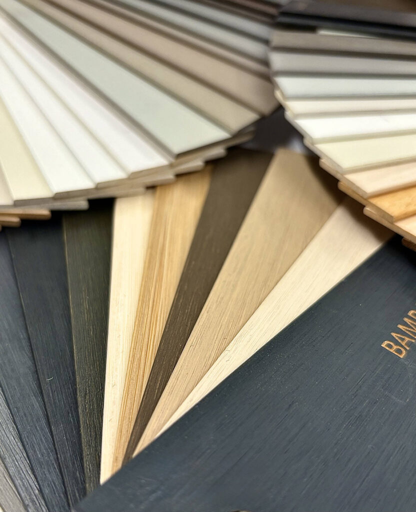 Wykonane z naturalnych włókien bambusa – lekkiego, elastycznego i ekologicznego materiału. Dostępne w naturalnych odcieniach, z widoczną strukturą włókien. Lamele cieńsze i lżejsze niż w żaluzjach drewnianych.